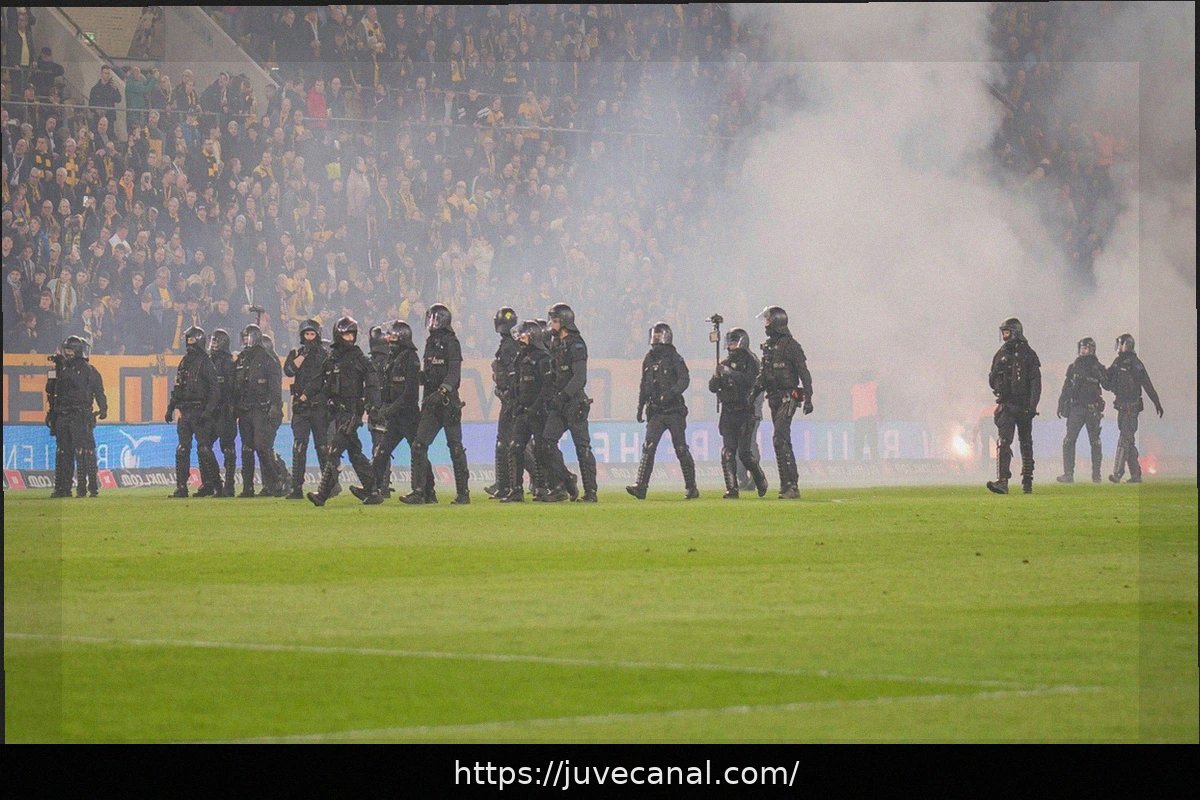 Emergency personnel entered the field to separate the groups, leading to a 20-minute suspension of the match. Dresden’s Sporting Director, Sören Gonther, indicated that the catalyst for the unrest was «likely the theft of a flag.»