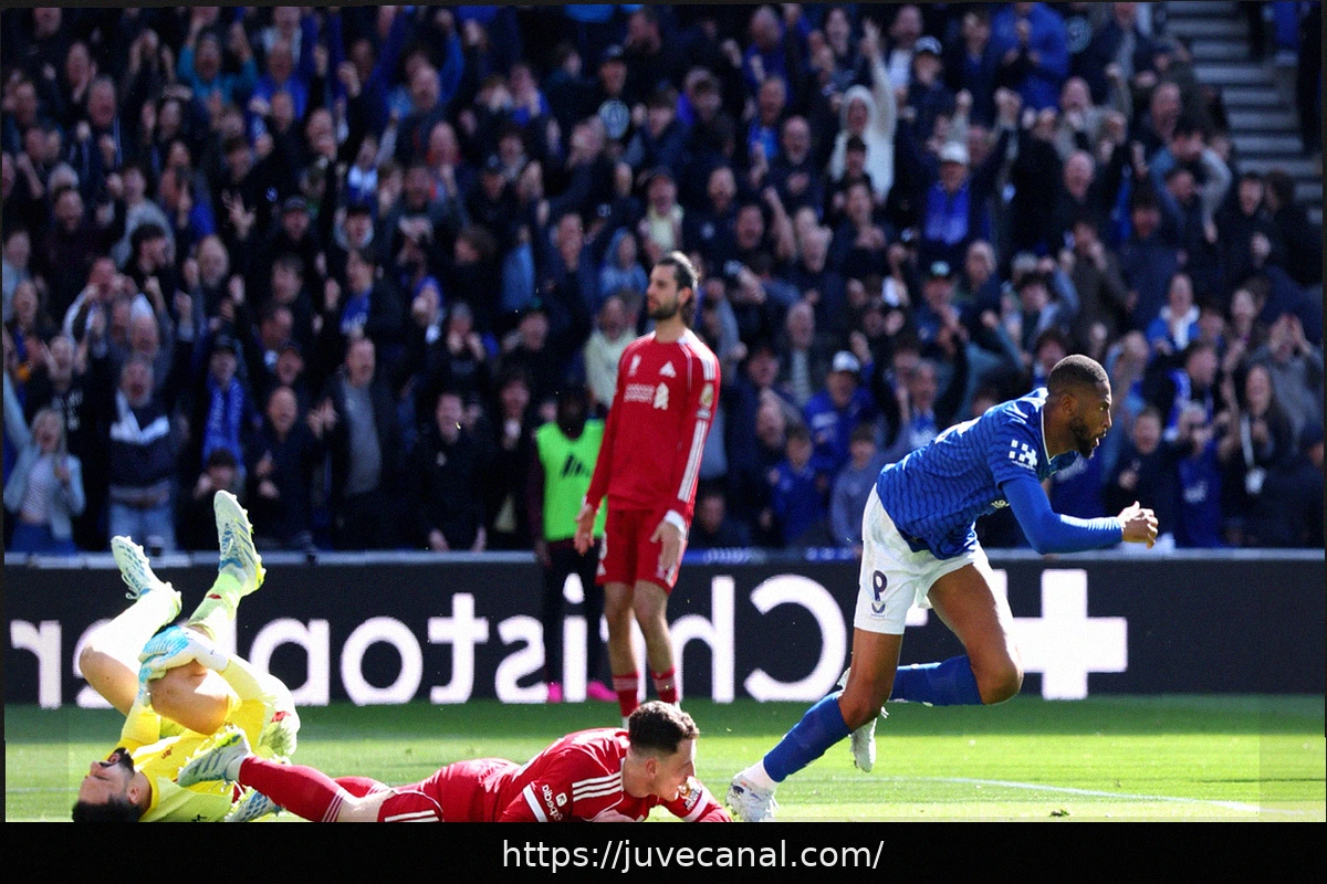 At that point, the visitors were leading 1-0 at Goodison Park thanks to a goal from Mohamed Salah (29th minute). Shortly after the restart, Vitaly Mykolenko, on the left flank, sent Kiernan Dewsbury-Hall on a run. Faster than Ibrahima Konaté, he delivered a sharp, low cross into the box. From about seven meters, the advancing Beto scored the equalizer.