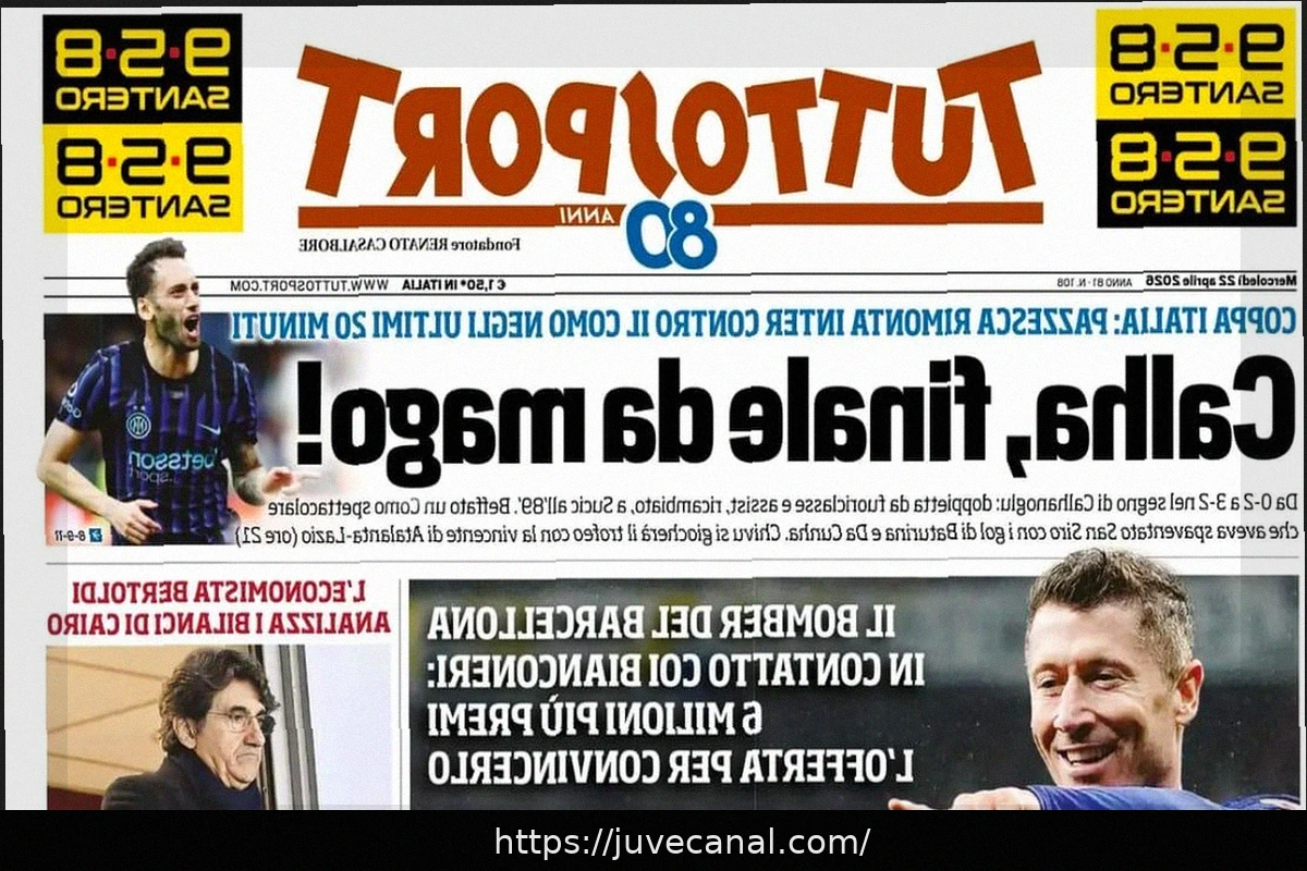 Today’s front page from Tuttosport features the main headline: «Juve-Lewa, sorpasso al Milan.» This signifies that, according to the newspaper, Juventus has overtaken AC Milan in the race to sign Robert Lewandowski.